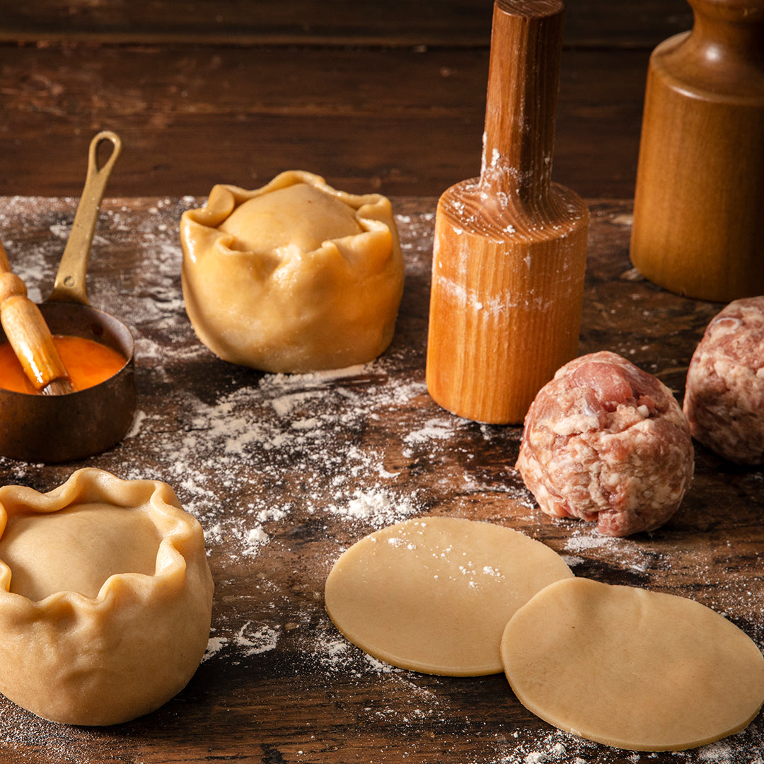 Mary Dickinson (Grandmother of John Dickinson), a noted pork pie maker, is credited with using the first wooden dolly to raise the pastry case: she is considered as the originator of the hand raised Melton Mowbray pork pie.